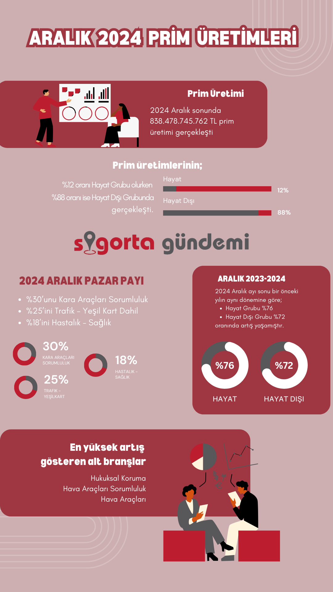 oranında artış yaşamıştır. 2024 Aralık dönemi prim üretimlerinde pazar payının;