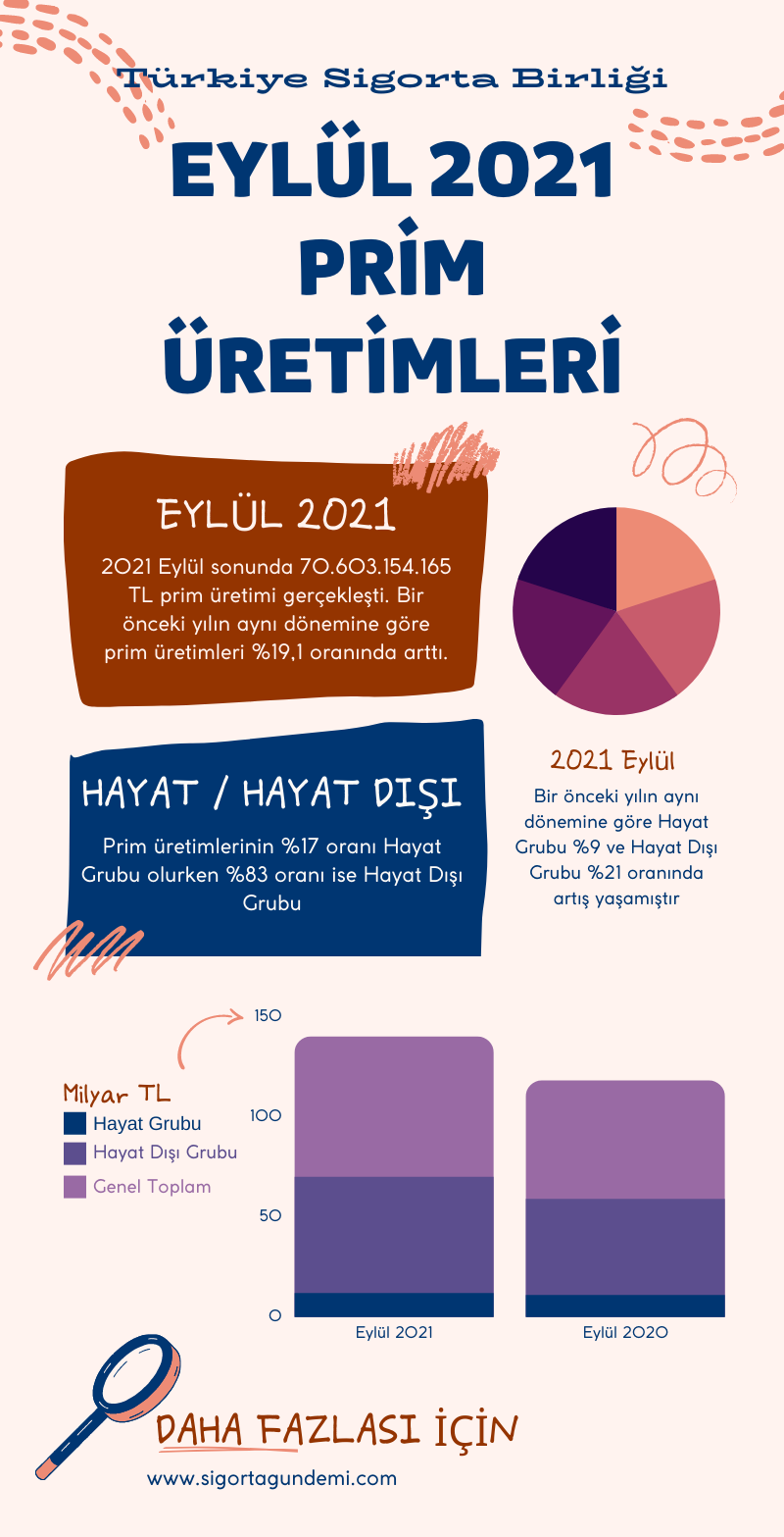 2021 Eylül ayı sonu bir önceki yılın aynı dönemine göre Hayat Grubu %9 ve Hayat Dışı Grubu %21 oranında artış yaşamıştır.