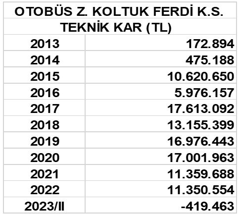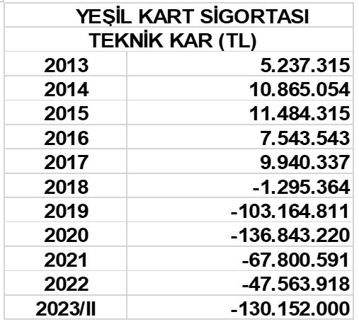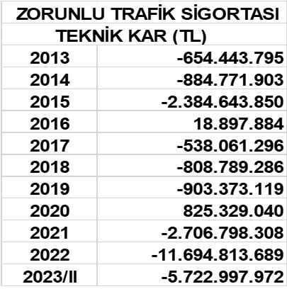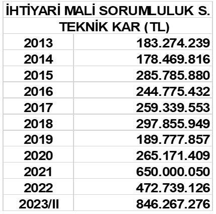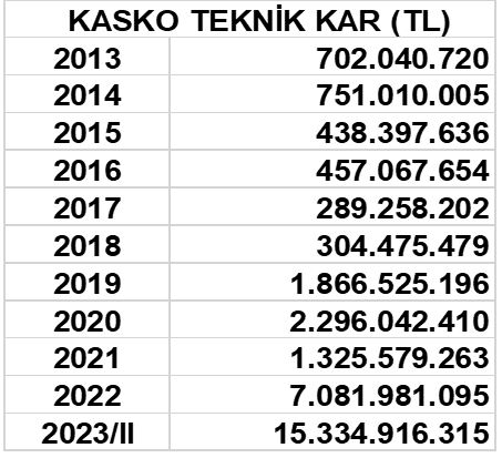 Çok küçük bir branştan bahsediyoruz. Sektörün büyüklüğüne göre cüzi tutarlarda teknik kar üretmiş. 2023 yılının ilk yarısında da cüzi miktarda teknik zarar görünüyor.