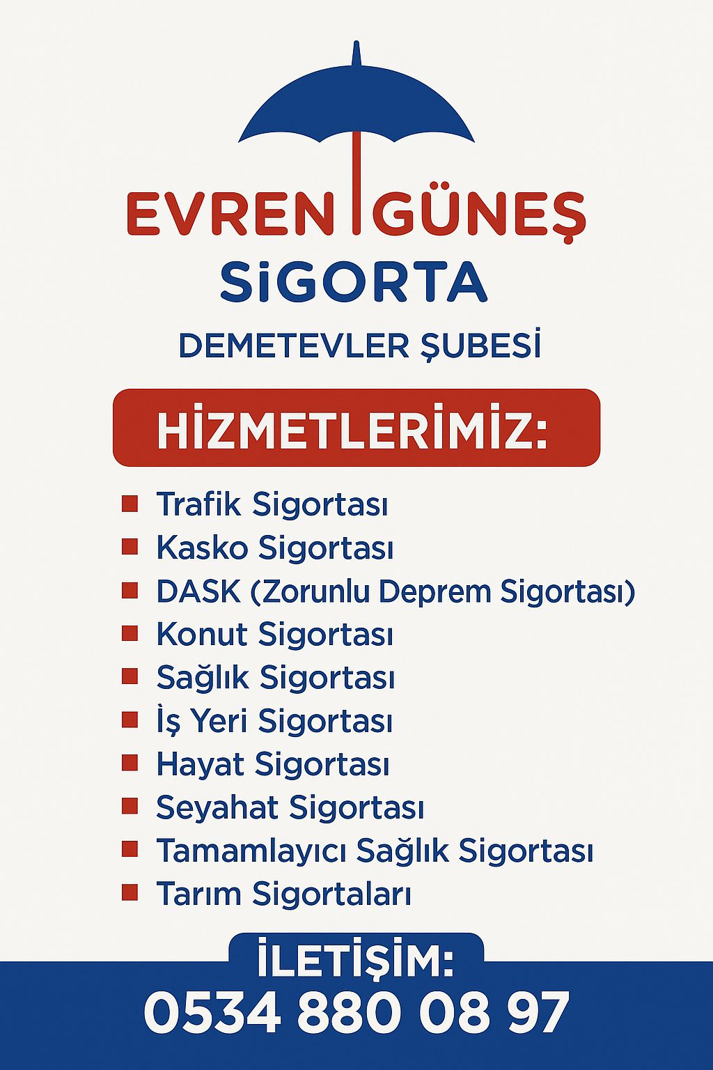 Yetkili acentesi olduğumuz 30’un üzerinde sigorta şirketiyle birlikte tüm sigorta branşlarında yanınızdayız. En uygun fiyat teklifini almak için lütfen bize ulaşın.