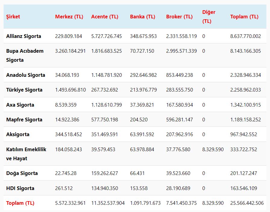 - Allianz Sigorta 8 milyar 637 milyon TL